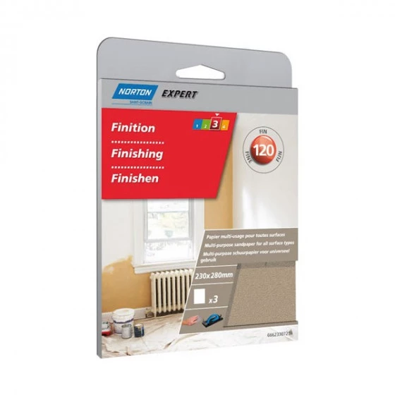 3 feuilles de ponçage à main papier Multi-usageGrain 120Longueur x largeur : 230×280 mm