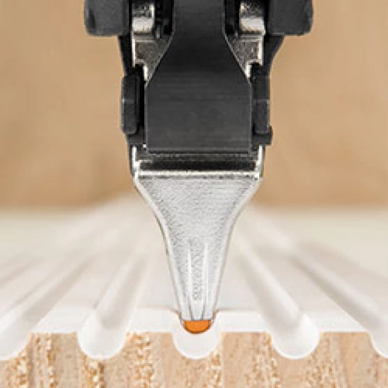 Cette technologie de pointe vous permettra de travailler avec un minimum de pression pour activer l’outil. Ici, dès que vous appuyez sur la gâchette, l’extrêmité du nez détecte la surface de clouage et donne une finition propre et professionnelle.